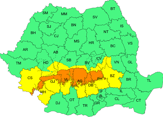 Două zile cu precipitații abundente! Este anunțul făcut de meteorologi, care au actualizat prognoza și au emis noi avertizări. Până mâine seară, la ora 20.00, va fi cod portocaliu de ploaie şi lapoviţă în zona de deal şi de munte a judeţelor Mehedinţi, Gorj, Vâlcea, Argeş, Dâmboviţa şi Prahova, unde cantităţile de apă acumulate şi