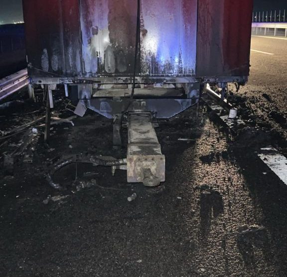 Trafic restricționat pe Autostrada Moldovei. Un camion a luat foc în mers